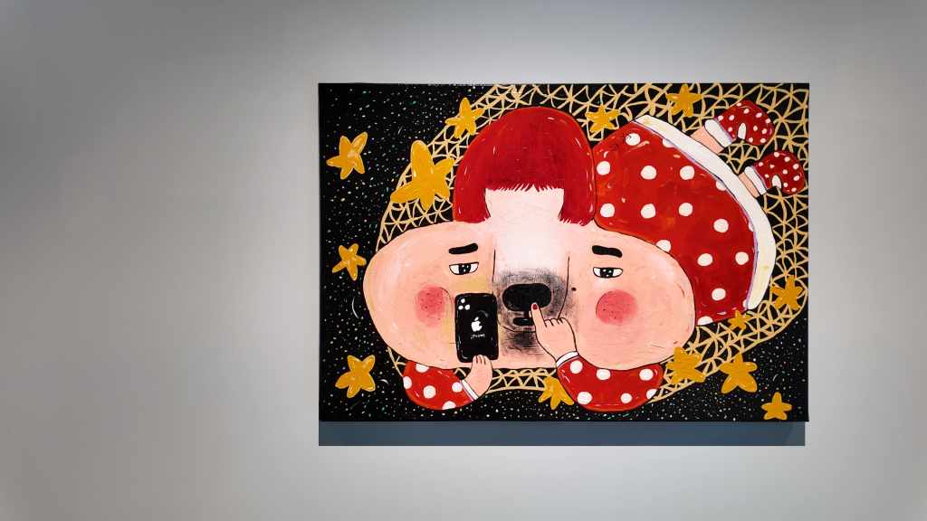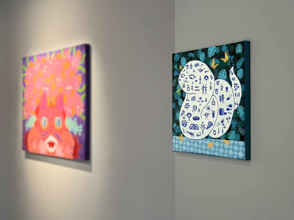 「Play」從字面上來看有著雙重意義。一是「玩」,這是它的本質也是它的目的,就是要有趣、享受且愉悅,它必須有高度的自主性,其所彰顯的原則與特質是「自由」,一種能即刻反應需求與滿足當下欲念的理想精神;其二是「扮演」,遊戲的發生地點和時間一定有別於平常生活,它是在特定範圍的時空中展現出自身的過程和意義。它是一個能脫離自我現實身分,依附在新的形象裡,再以另一種特定的存在機制現身而成為某個欲望或他者。於此,人們也就能在藝術家廖堉安的擬人動物中投射自我,在帶有劇場形象的角色裡巧妙地轉換身份,一旦能在複雜的社群關係裡找到轉化情緒的出口,人們也就能在繽紛、勻實且縝密安排的色層中得到療癒;而藝術家培根君則以一種繪本說故事的方式,直覺地運用了人們對於藝術史、卡漫中的熟悉角色,透過多重複合的形象與個性,在天真爛漫且脫離常規的邏輯中開啟探索未知世界的旅程。