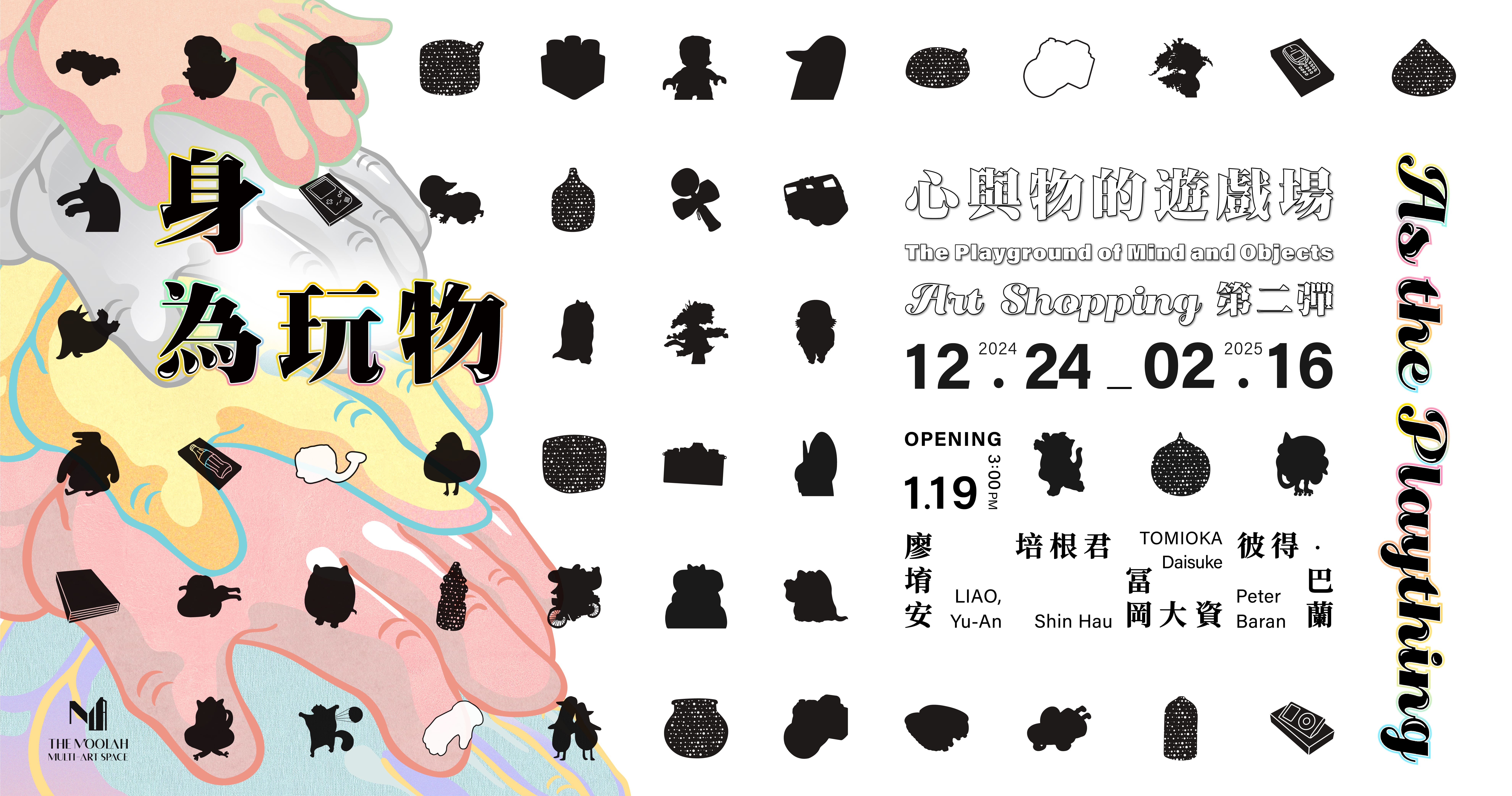 𝗔𝘀 𝘁𝗵𝗲 𝗣𝗹𝗮𝘆𝘁𝗵𝗶𝗻𝗴 — 𝗧𝗵𝗲 𝗣𝗹𝗮𝘆𝗴𝗿𝗼𝘂𝗻𝗱 𝗼𝗳 𝗠𝗶𝗻𝗱 𝗮𝗻𝗱 𝗢𝗯𝗷𝗲𝗰𝘁𝘀|𝗔𝗿𝘁 𝗦𝗵𝗼𝗽𝗽𝗶𝗻𝗴 𝗜𝗜|𝐀𝐫𝐭𝐢𝐬𝐭𝐬 LIAO, Yu-An/Shin Hau/TOMIOKA Daisuke/Peter Baran|𝐎𝐩𝐞𝐧𝐢𝐧𝐠 2025.01.19 Sun. 3:00 PM|𝐃𝐚𝐭𝐞 2024.12.24 Tue. – 2025.02.16 Sun.|10:30 – 19:00 (Mon. – Sun.)|𝐕𝐞𝐧𝐮𝐞 The Moolah Multi – Art Space|𝐀𝐝𝐝𝐫𝐞𝐬𝐬 No. 15, Sec. 3, Guohua St., West Central Dist.,Tainan City 700, Taiwan (R.O.C.)