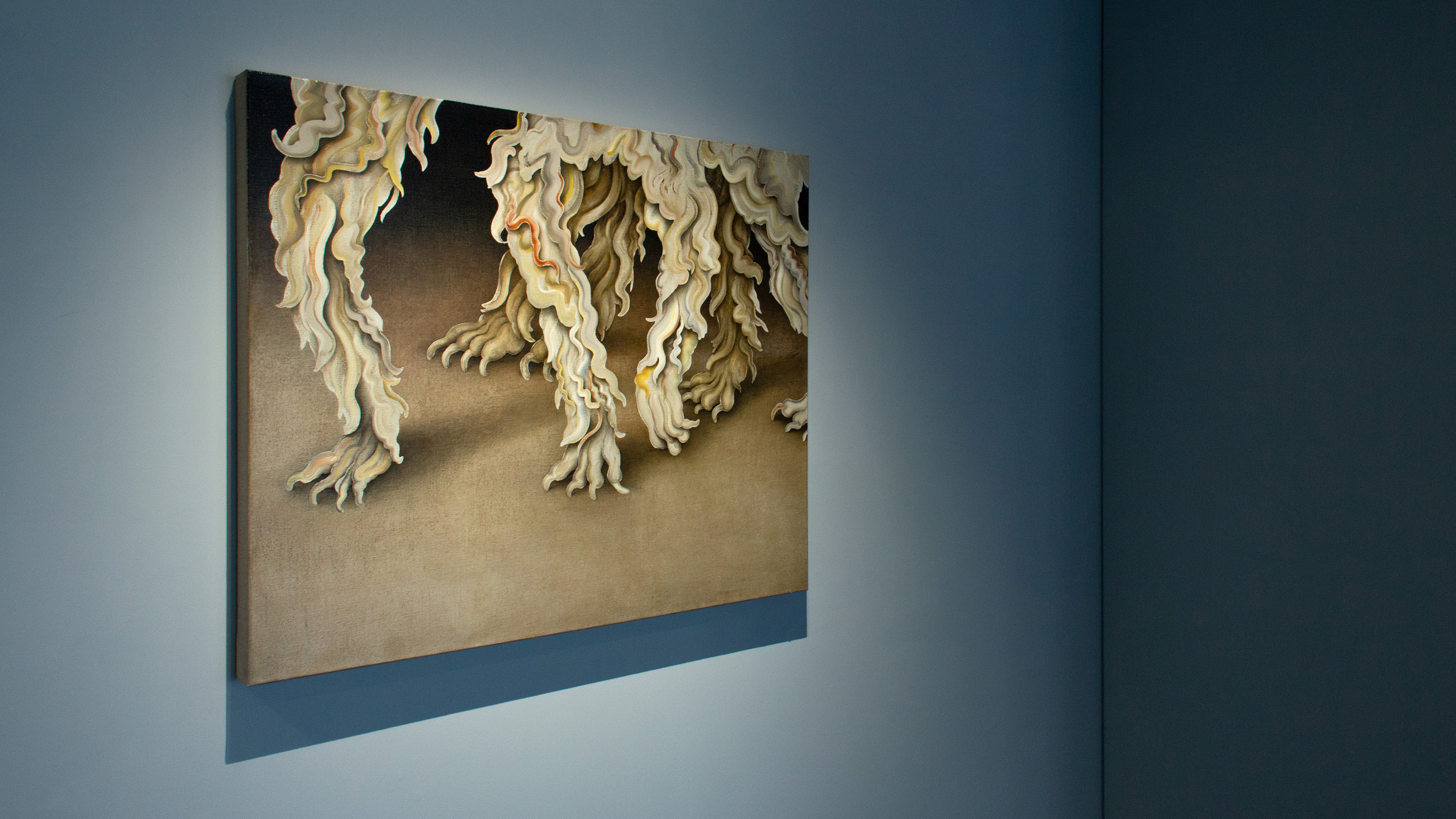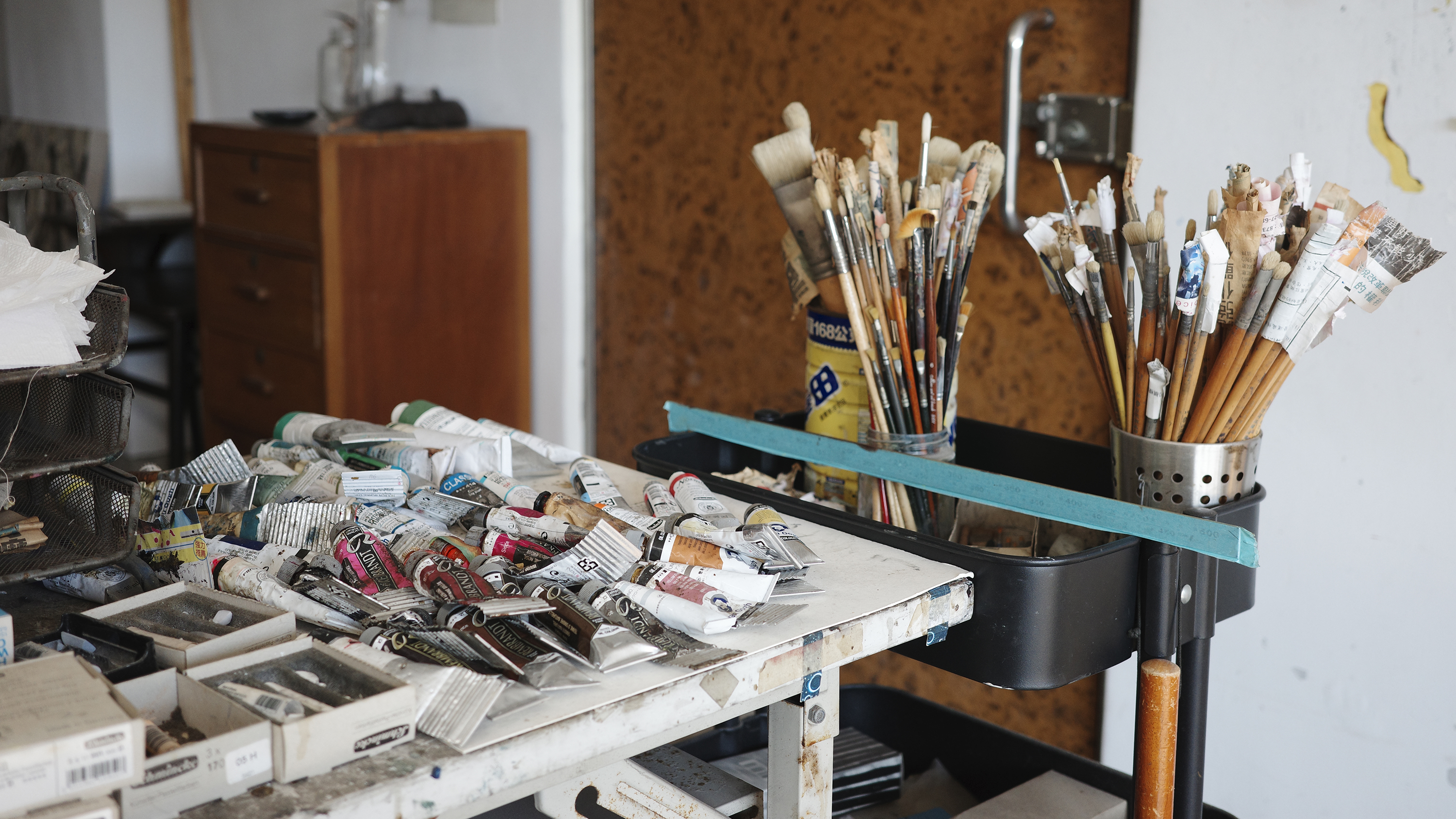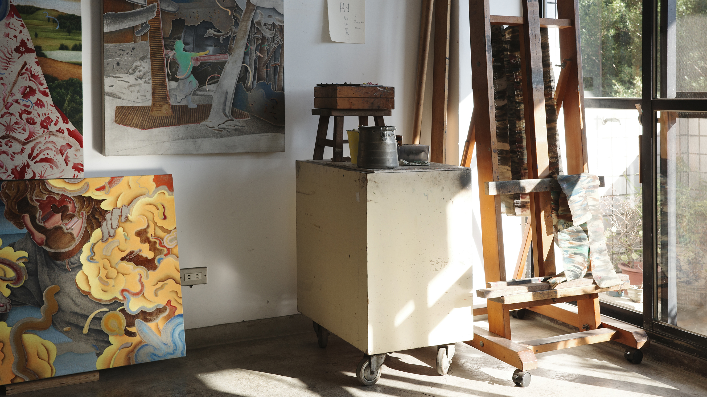 我做作品時其實不太聽音樂,要說聽什麼的話,有時候會聽藝術、財經、科技類主題的Podcast邊畫畫。如果要聽音樂則是畫完收拾洗筆時,當作提振精神的工具,會聽Kpop或是Techno,但最近聽比較多的是A.A. Williams的Just A Shadow。