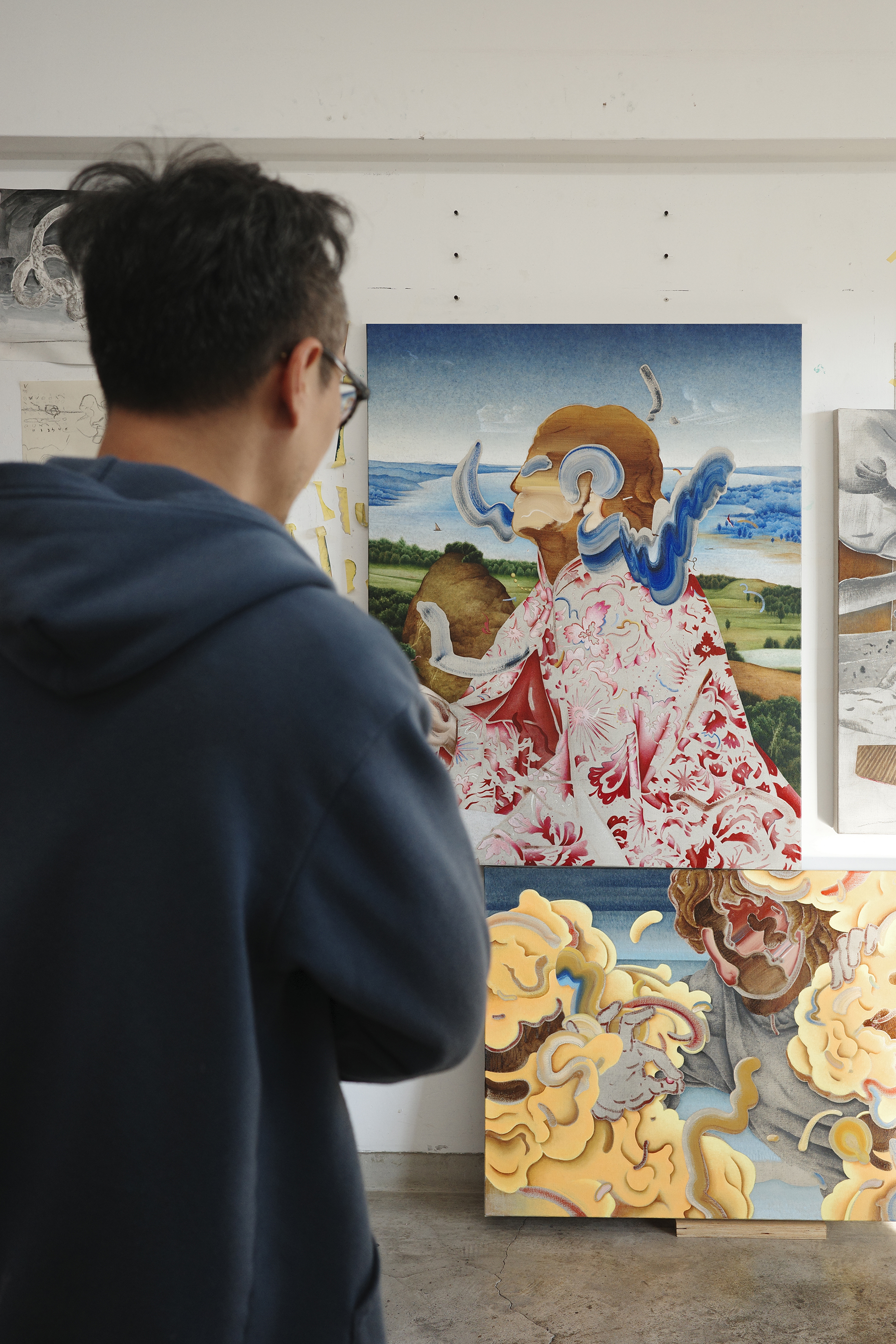 把人物的臉畫出來,好像就太完整了。也不是硬要製造空缺,或是強迫大家在觀看時套用想像力。我要的其實就是「模稜兩可」的狀態,透過繪畫表現不那麼確定的東西,把觀看偏離一點現實,形成有趣的體驗。