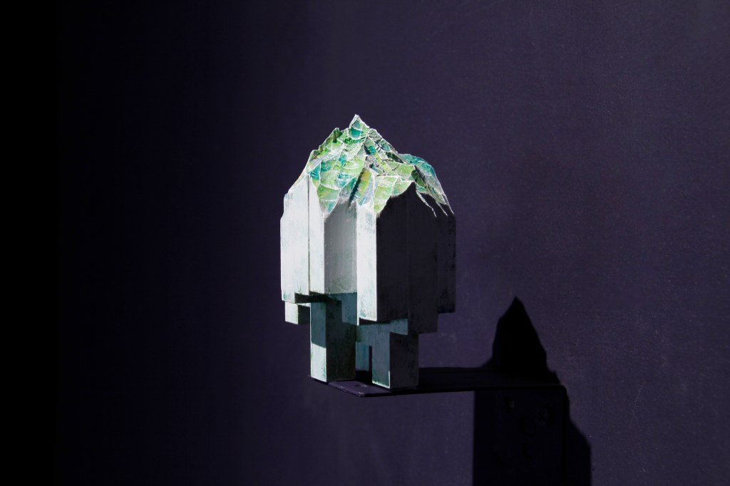此次亦特別邀請到藝術家水谷篤司,其故鄉在日本中部岐阜縣,是一個山巒緜延,溪谷縱橫之地,他與土地極為深厚的情感關係透過木頭與金屬,形塑出其生命經驗與自然大地的連繫樣貌。他將環境中的一切訊號重新理解,化約成為心中的風景,同時亦試圖與觀者對話,形成一幕幕微縮式的巨大景觀。