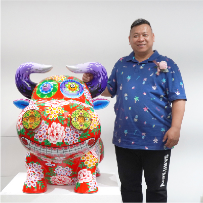 豪邁而不拘小節的個性,豐富的人生歷練經過挫折、失意,但總還是能積極而熱情面對問題。韌性的生命力中相對有敏感的同理心境,對身旁的人總能互換立場思考,不藏私的分享生命經驗,並適時給予協助及連結、交流各方資源。充滿正能量和細緻觀察力的人格特質也反應在他的作品裡,給人熱情流線、華麗繽紛可愛近人而具有豐富感染力的視覺感受,圖像和材質的混搭,看似無脈絡可言,靈活而勇於嘗試,鮮活的絕妙混搭出能在國際性的大展中極為吸睛、履獲好評的作品,自信展現台灣在地情感和特色性的符號。