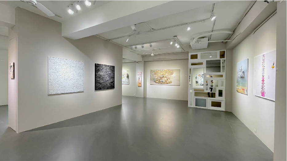 衡」,擅長以東⽅⽔墨融接⻄⽅造形、次⽂化符號嫁接童年⾓⾊,透過戲劇敘事隱藏幽默⼼ 境,藝術家提供了⼀個遠看其勢近看其質的「移動視ᰀ」,引導觀者進入創作語境的同時, 也讓觀看⾏為愈加靈活⾃由。