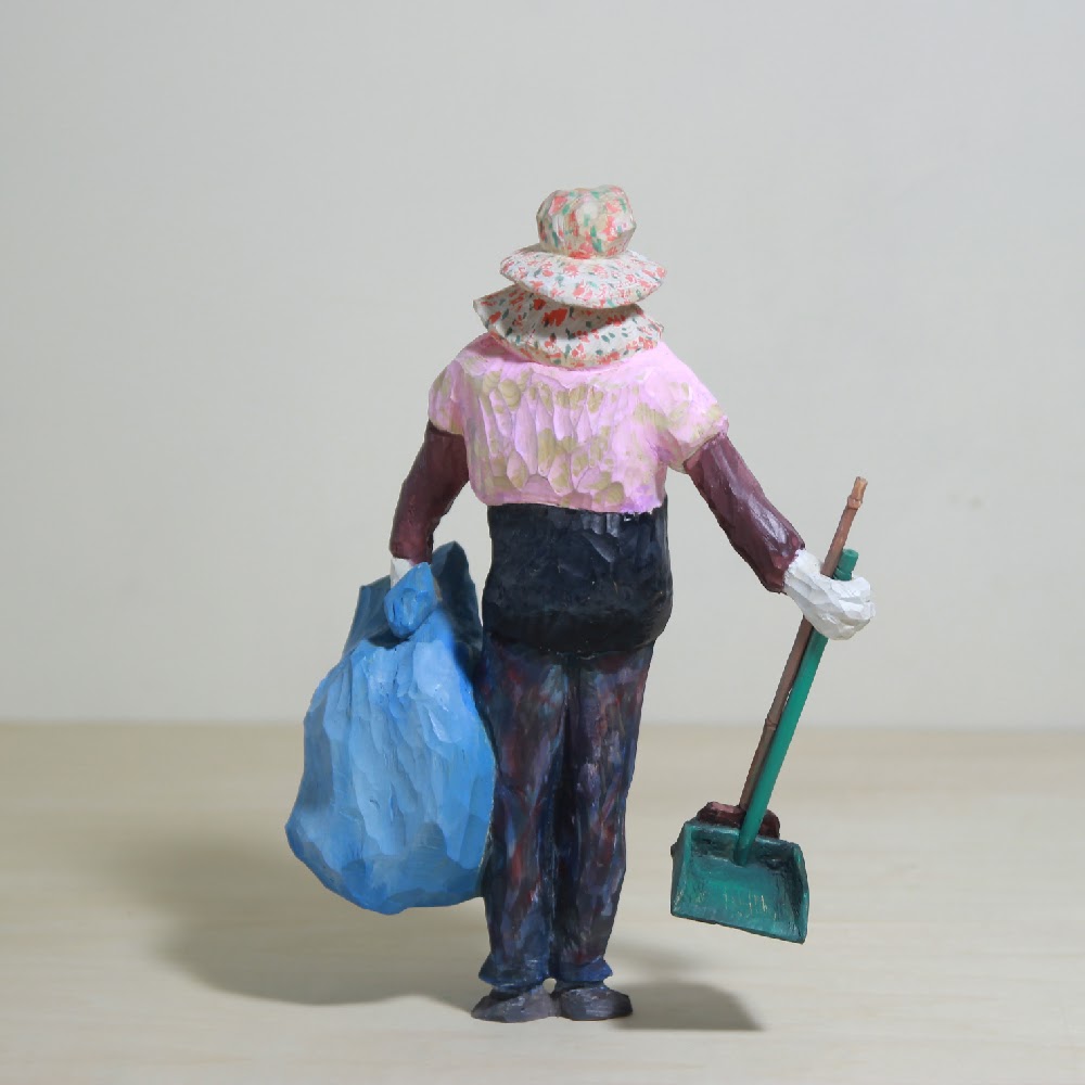 近期以木雕為創作媒材的陳廷晉,喜於探討關於人的議題,以挖掘內在思索探尋靈魂做為個人在創作上最大的動機。承續工人漁婦的「背影」所象徵的意義,此次展出的「群人系列」擴大了刻畫的範圍,以日常的背影堆疊整個城市的縮影。朱自清的背影將父親從平凡日常的事件中對兒女的愛,以樸素的文字表達出细腻及真摯,陳廷晉也期望能藉由不具戲劇性的背影展現市井小民的人群百態。