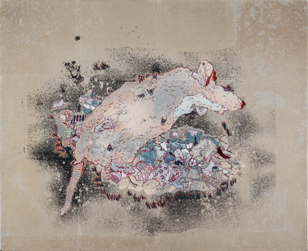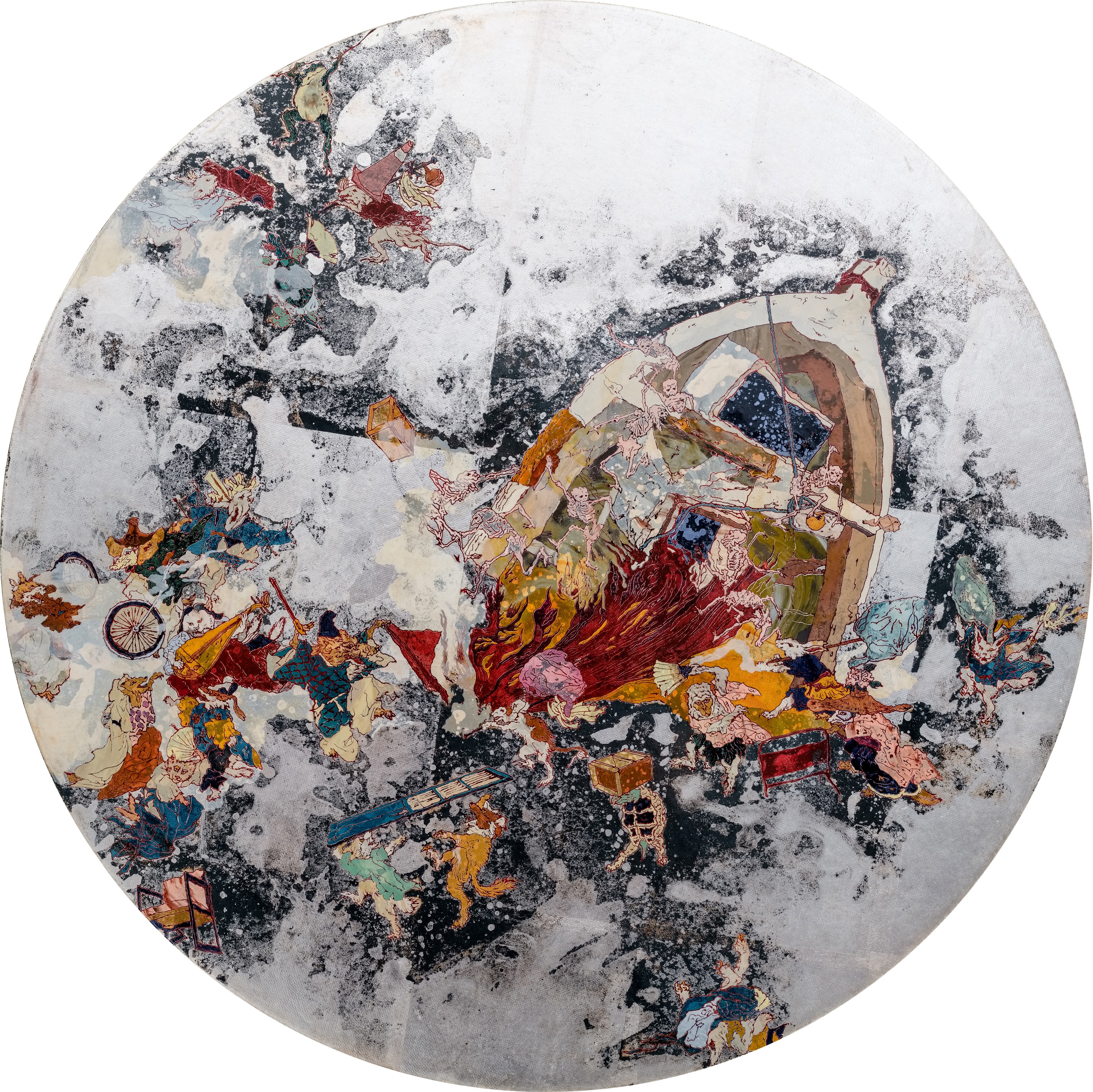銀箔、壓克力顏料、畫布Silver foil, Acrylic on Canvas109 × 138 cm.2019