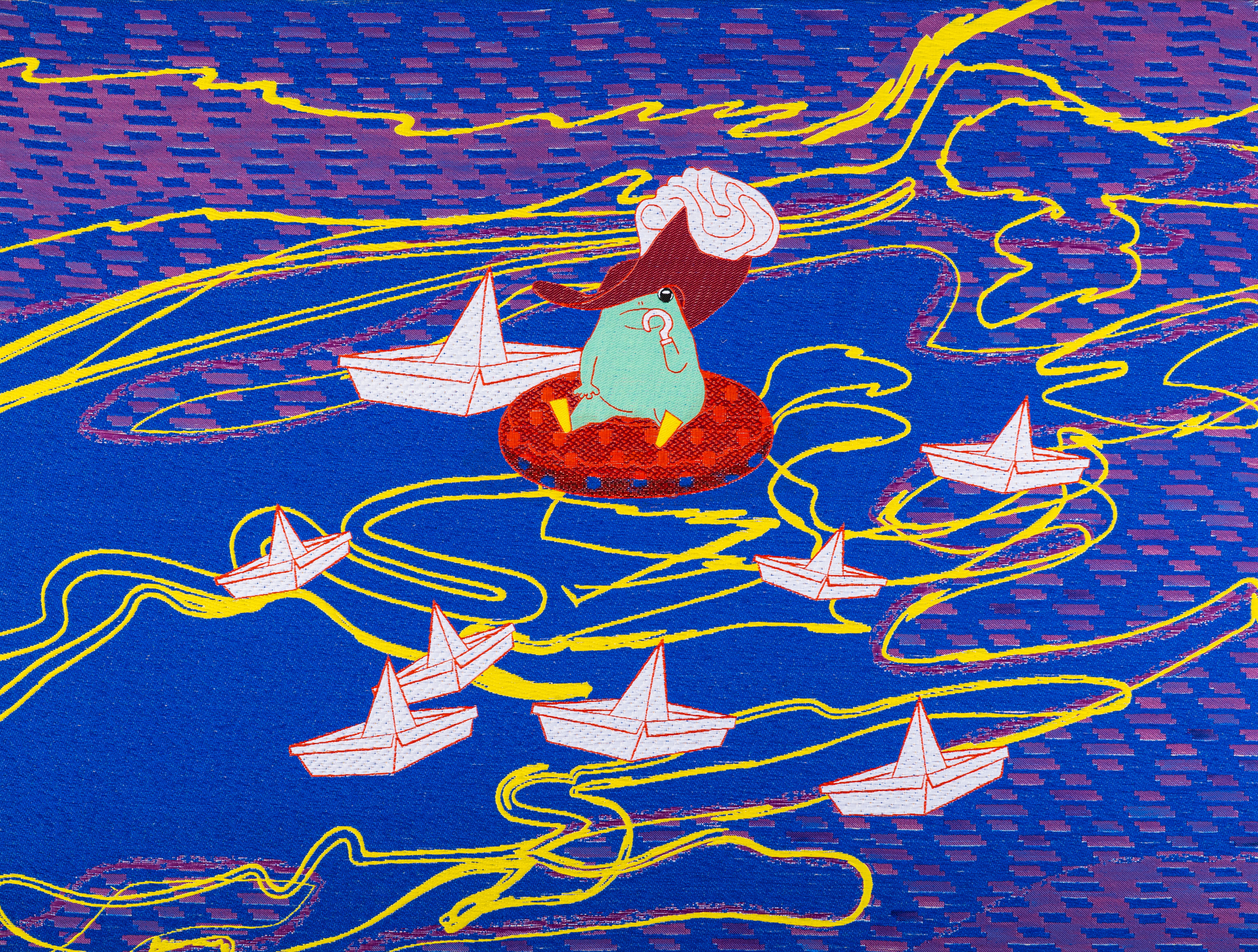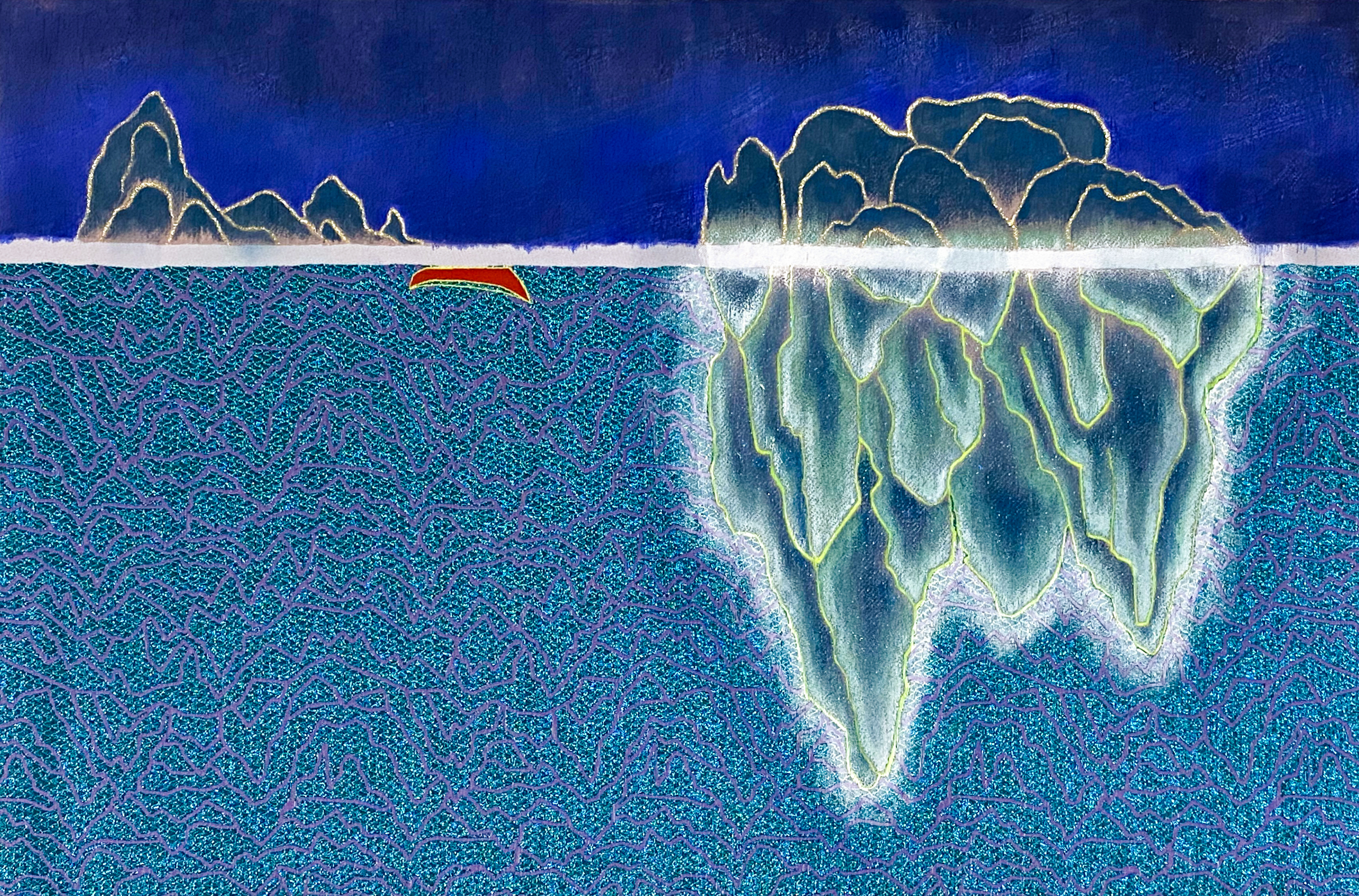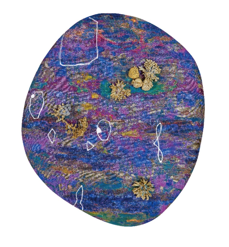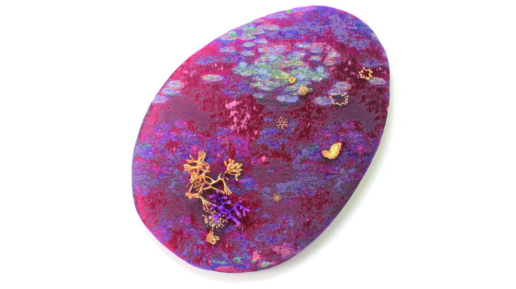 Cotton, Artificial Fiber, 20-24K Gold, Stainless Steel, Copper, Glass, Wood panels, Foam padding, Acrylic paint