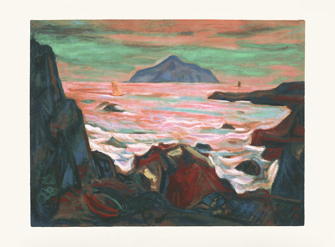 廖繼春(1902-1976)出生於臺中豐原農家,屬最早留日的前輩畫家之一,其畫風早期富有外光派色彩,中期始趨向接近抽象的表現形式,以色彩象徵性捕捉對象物的現實感,晚年又回歸具象,追求他所認為「堅實而永恆」的作品。廖氏自幼父母雙亡,養成獨立自主之性格,1918年就讀於臺北國語學校乙種師範部,1924年前往日本,就讀於東京美術學校圖畫師範科。雖然當時日本已出現各種現代藝術風潮,但學院體制下所學仍是傳統的外光派技巧,其畫作尚具扎實的素描骨架和戶外光線的綜合性表現。然而,此時野獸派(Fauvism)、立體派(Cubism)已由「二科會」等美術團體迅速發揚並成長茁壯,他自然也接觸到這些前衛美術,尤以野獸派已開始進入其創作思維。1927年廖繼春自東京美校畢業,返臺後定居、任教於臺南,《有香蕉樹的院子》(1928)與《有椰子樹的風景》(1931)為此時期代表作,兩件作品追求光影變化及沉穩的結構,用色上整體明亮,充分展現了南部氣候的炎熱氛圍。