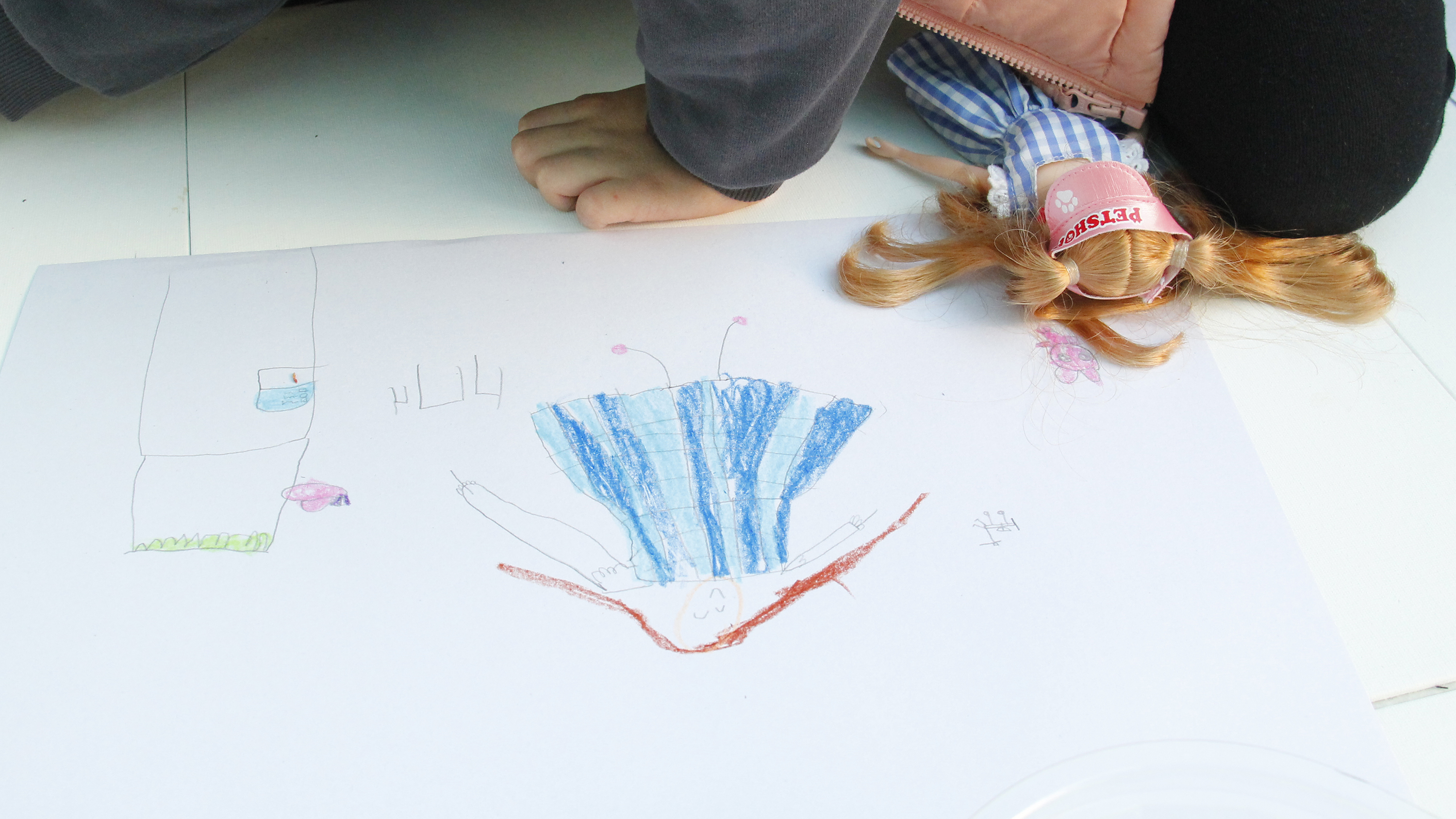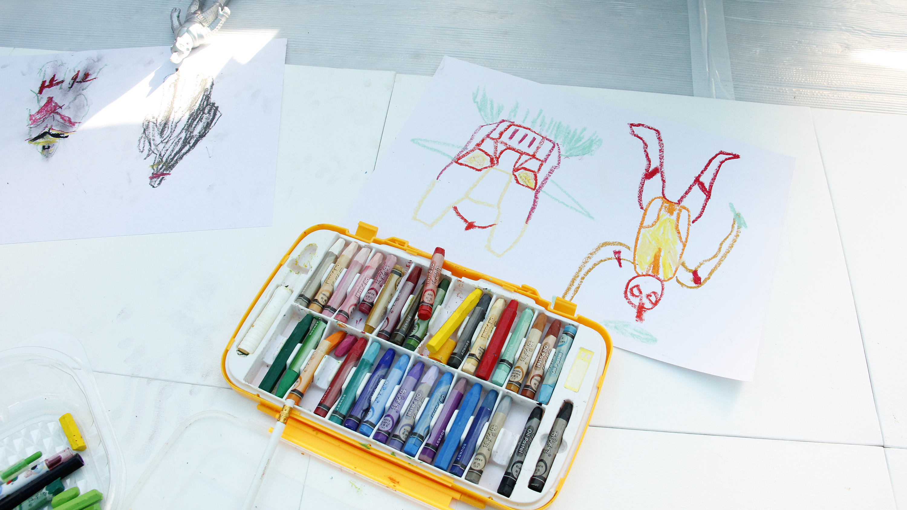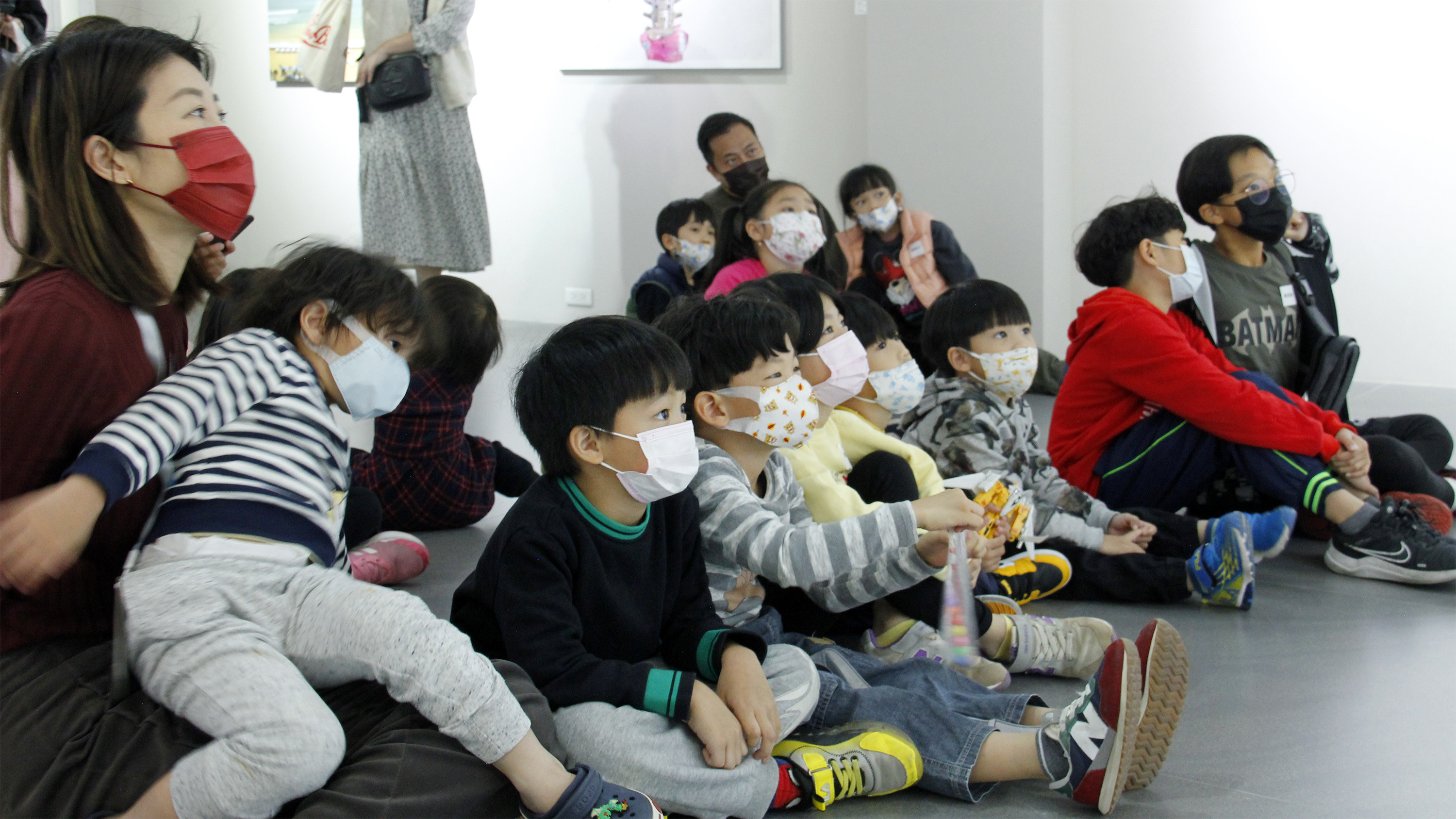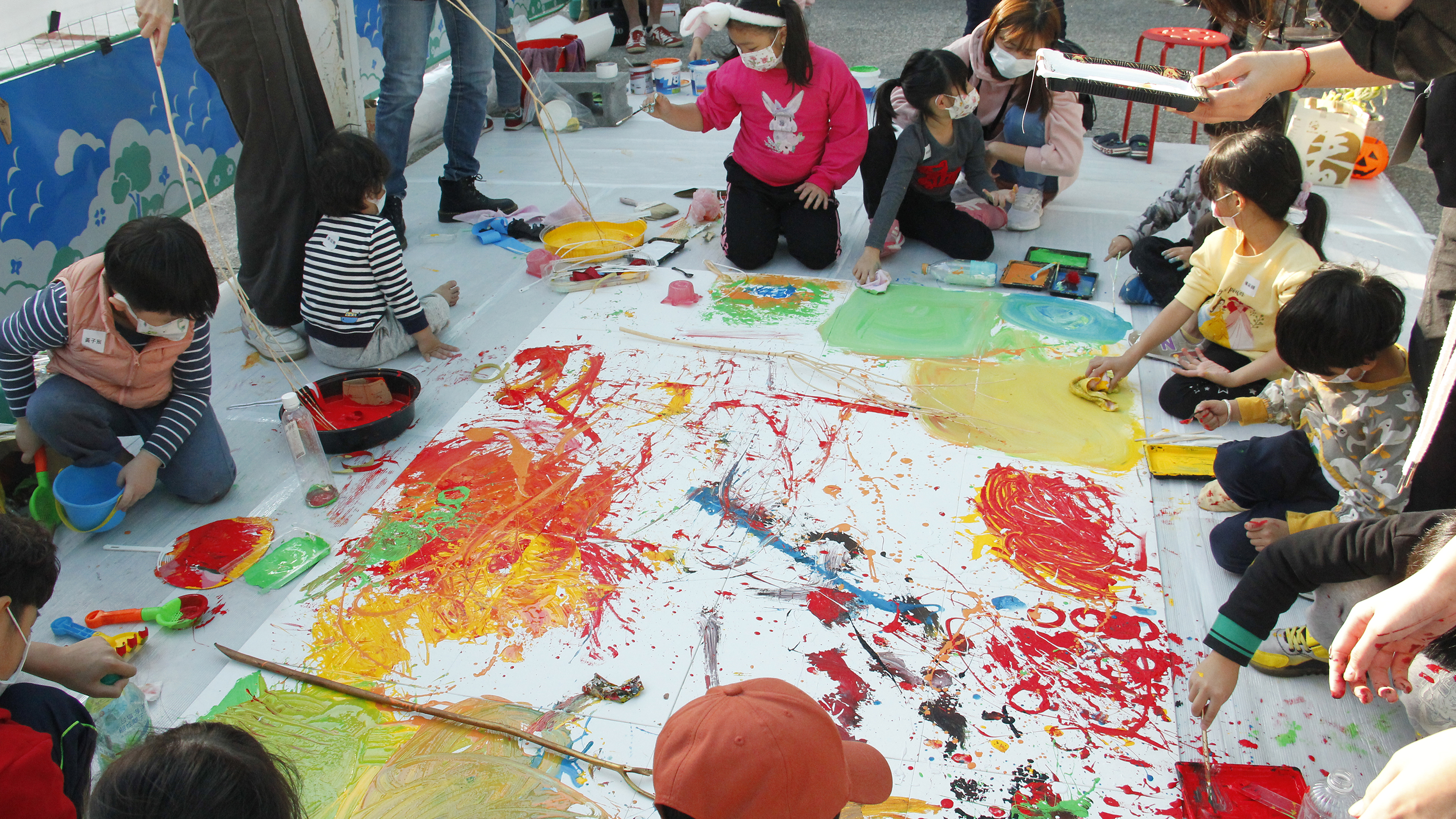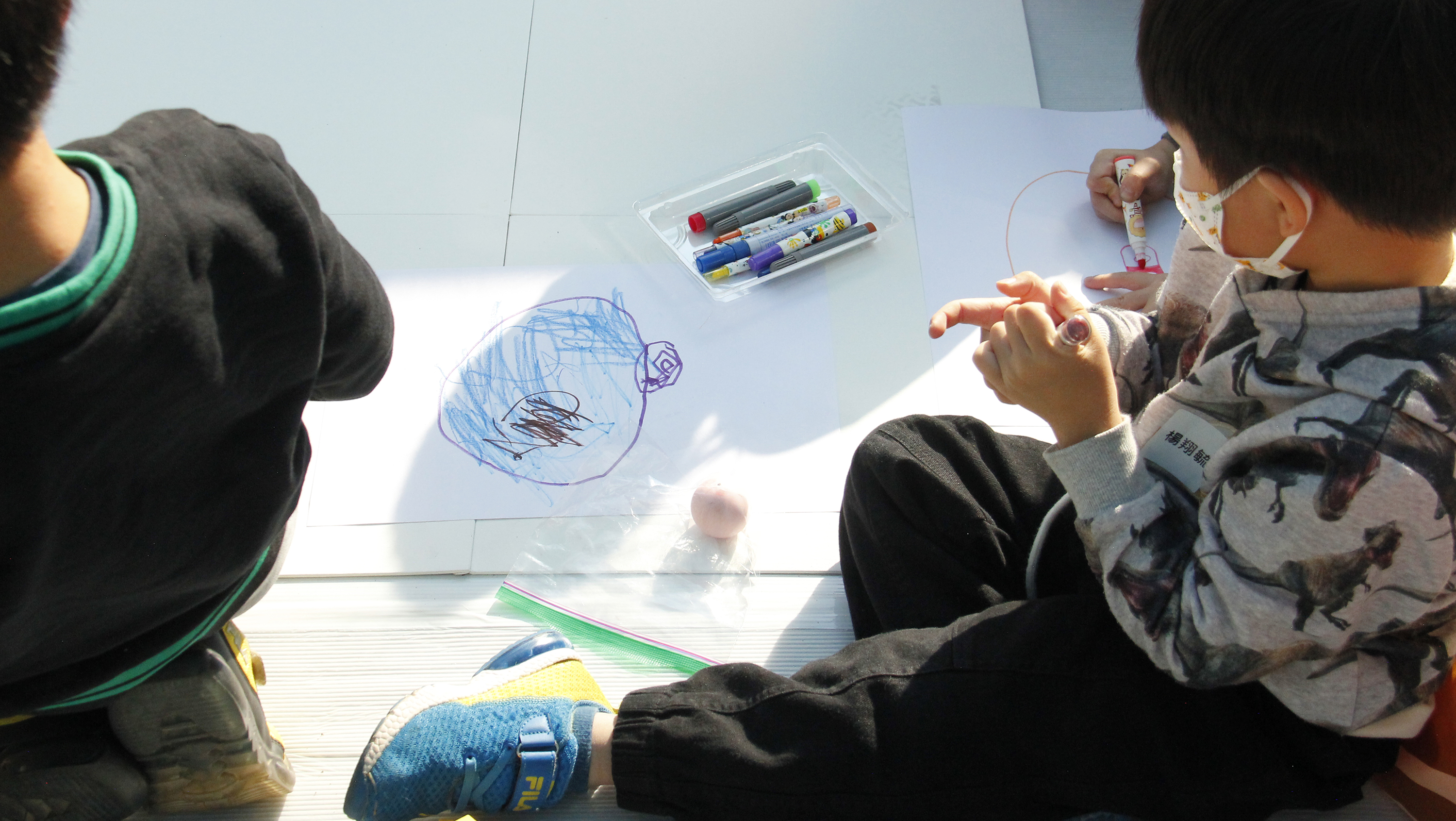 孩子們在超過200公分的大畫布上探索不同媒材去創作出各種圖像的視覺效果,觀察自己心愛的玩具並描繪下來與隔壁的新朋友分享,體驗親手塗抹的肢體創作。孩子跟爸爸媽媽一起畫了喜歡的英雄角色、玩具,悠遊在童趣想像的世界裡,收藏童年記憶與心愛的玩具,將美好封存在2022的平安夜。