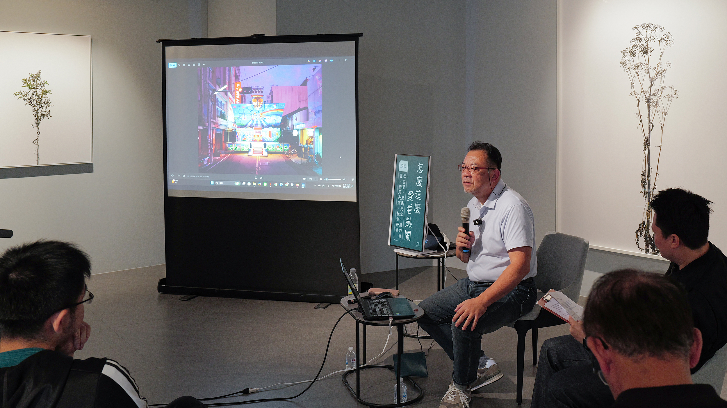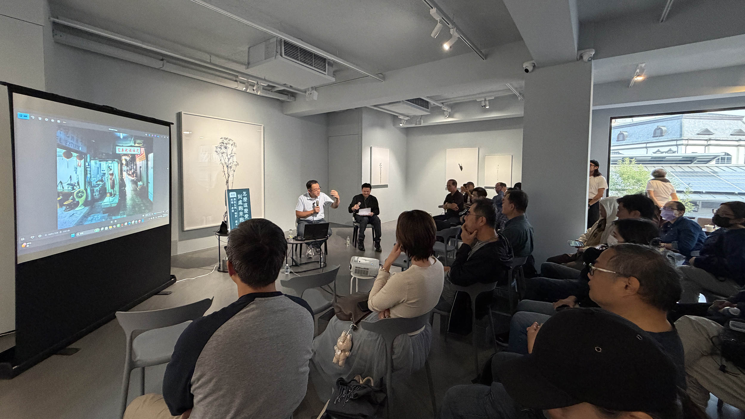 接著在與藝術家黃建樺有趣問答的過程,帶出了自己在拍攝「STAGE」系列的舞台車、「漂流」路線、與新世代合作的種種過程,提到那些在生命中留下深刻印象的味道與場景。冗長排隊隊伍的白河鴨頭、還有大腸包小腸和羅伯法蘭克(Robert Frank),這些影像之外的氣味、聲音與地方,反而成了創作路上讓人難以忘懷的故事。