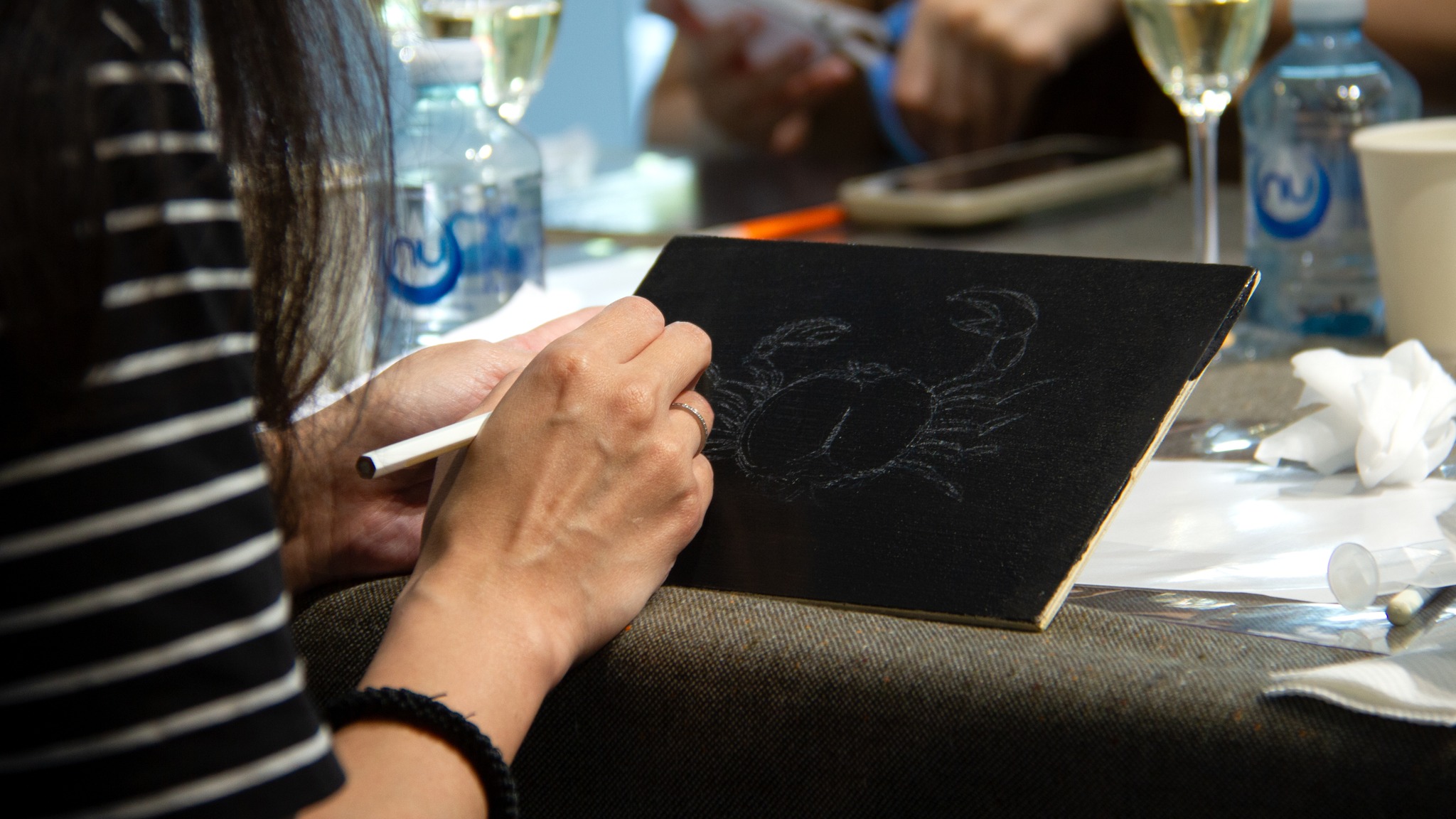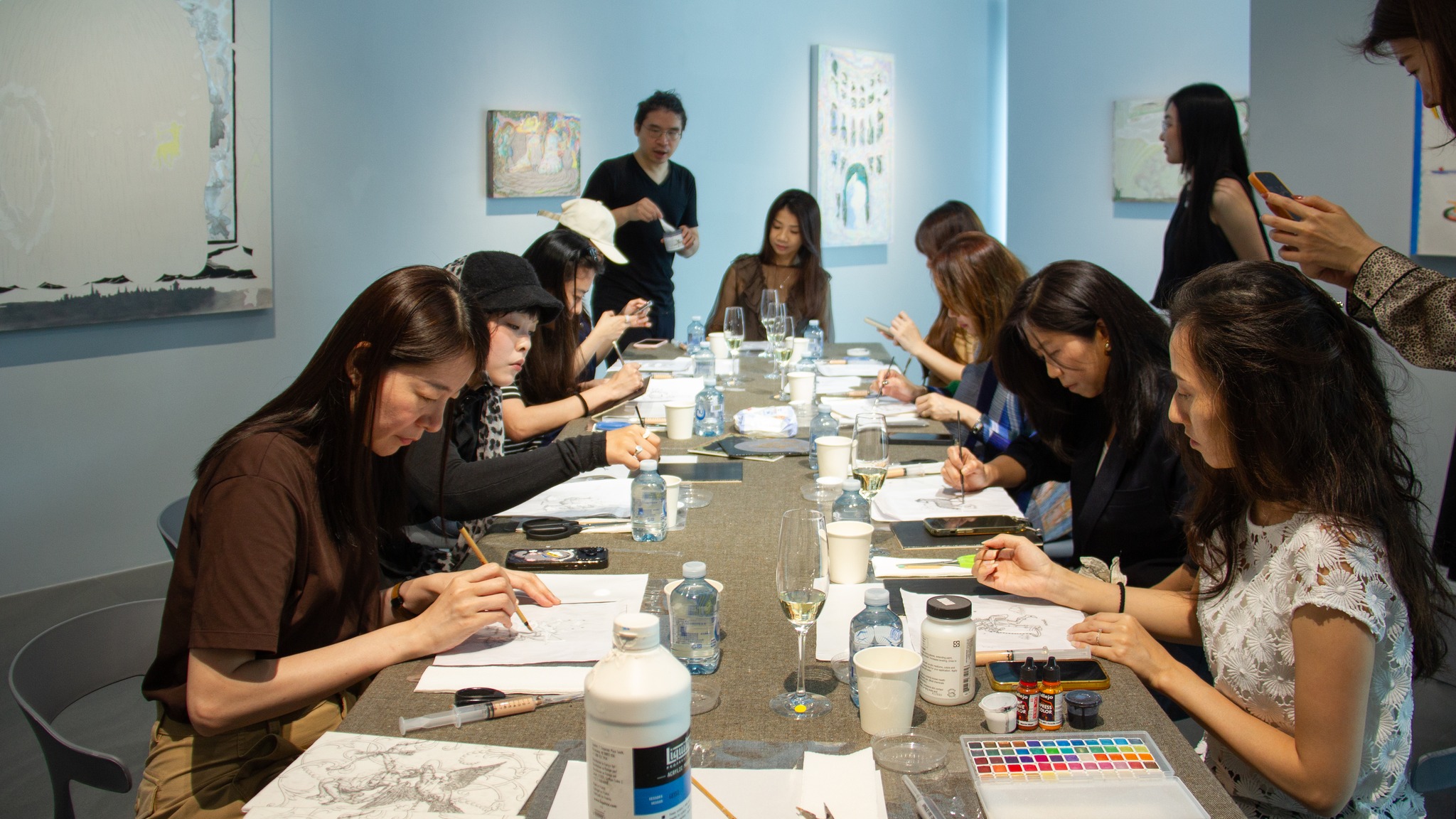 藝術與品酒交織,感官在微醺之中被悄悄打開,也讓創作多了一份流動。每一位參與者的作品,都展現出鮮明的個性、獨特的配色,令人驚喜。