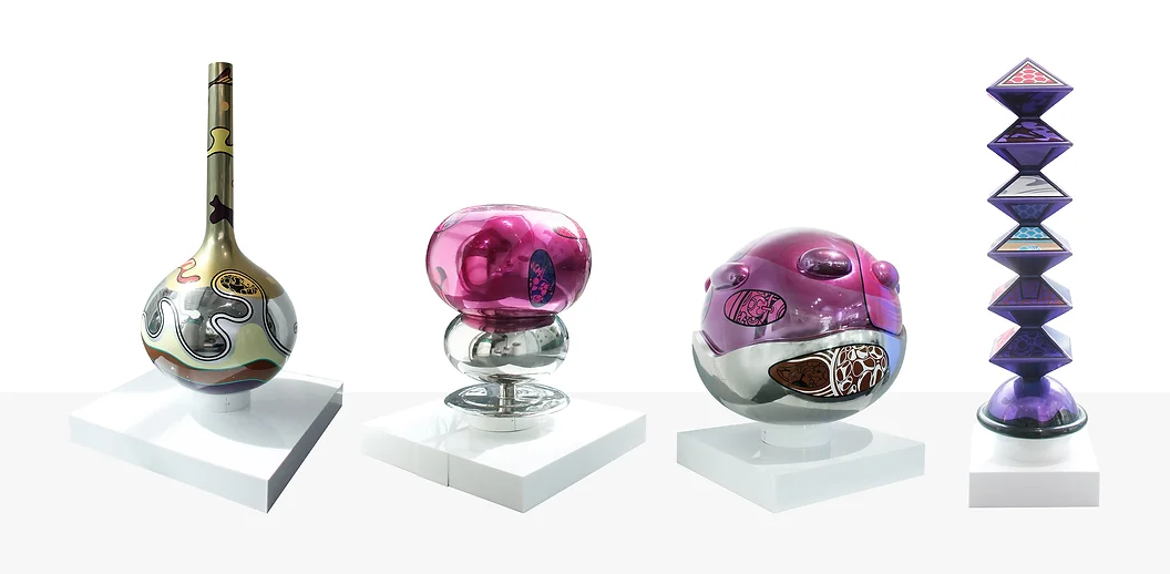 2018由左至右依序尺寸: (1) 120x84x84 cm(2) 90x69x69 cm(3) 65x65x57.5 cm (4) 140x30x30cm 不鏽鋼、烤漆