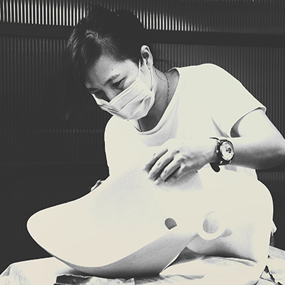 作品的成形經過層層工法,將泥條盤繞疊加塑出雛型,同步修整,並反覆上釉與打磨,在二次進窯釉燒後磨至表面絲滑流暢。其製作不易且耗時,同時在過程中可能面臨土坯坍塌或素坯燒裂等不確定因素,投入的時間心血隨時都可能要重新來過,但經歷這冗長的流程,製作中的直覺性捏塑與沉澱思考,使得許芝綺的作品協奏出一種獨特而美麗的韻律,渾身通透的瓷白在光的耀動下,影也瞬時轉變著,不同視角形成深邃的小宇宙,令人感受其中的優雅純淨。其作品看似抽象,實則充盈著對生命的熱愛,活力和力量在黑暗中張揚舞動,以不同的姿態舒張向外延伸,力圖超越視野限制,而這也包含著對自己的信念和價值觀的堅持。作品的留白讓它在人們心裡獲得無數的想像,使它能變化出更多樣的造形,在不同的環境、位置、高度和光線的烘托下呈現出不同姿態,隨時可以重新定義,而其所帶來的豐富生命力,亦正是藝術家的生活宣言。