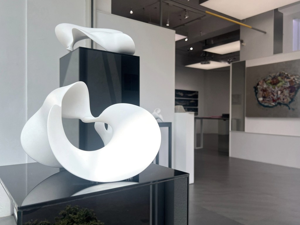 許芝綺的作品以曲線表達虛實空間,同時亦舞動著心靈,並以白瓷色固守著自己的創作理念。