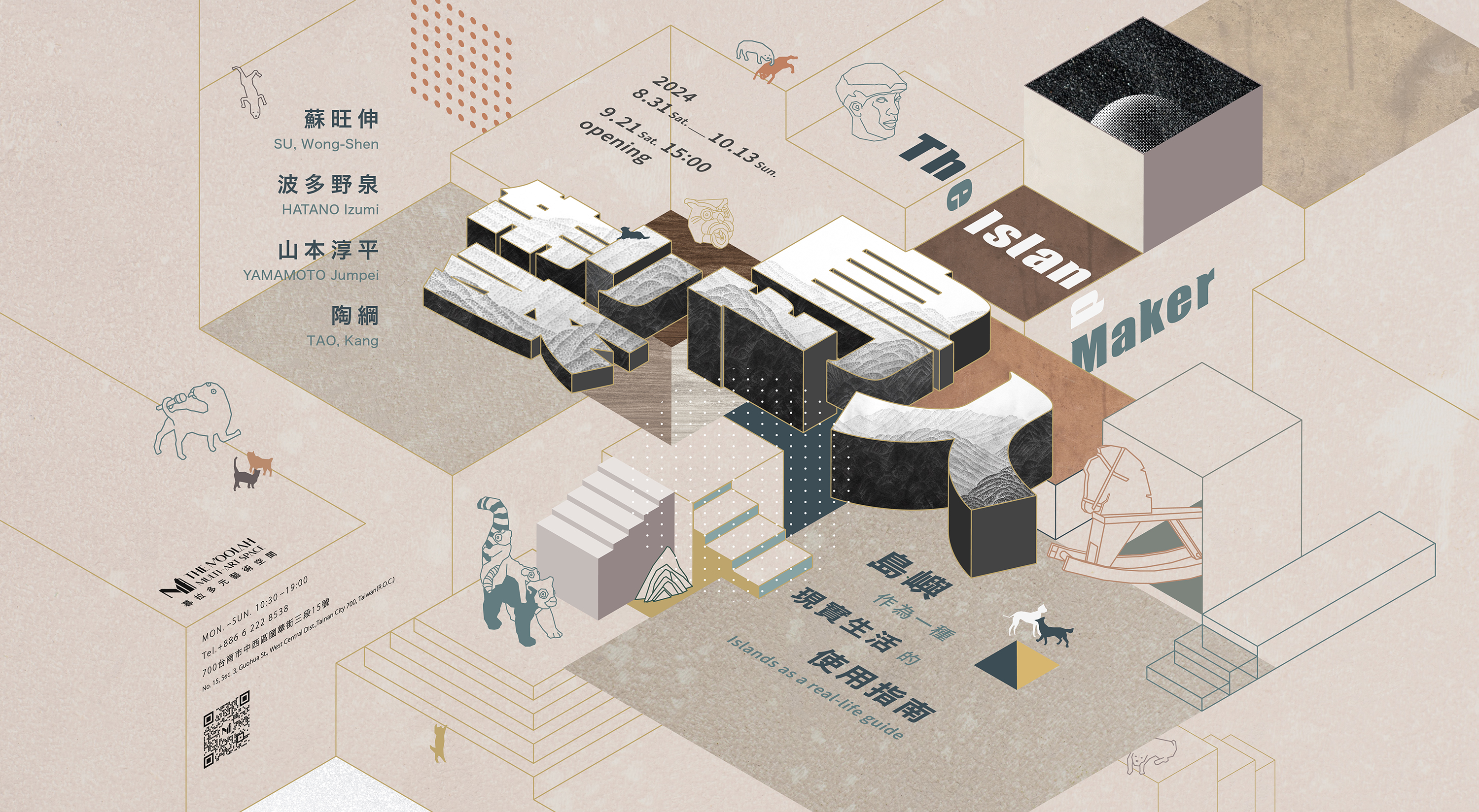 The Island Maker — Islands as a real-life guide|ARTISTS SU, Wong-Shen / HATANO Izumi / YAMAMOTO Jumpei / TAO, Kang|DATE 2024.08.31 Sat. – 10.13 Sun.|10:30 – 19:00(Mon. – Sun.)|VENUE The Moolah Multi-Art Space|ADDRESS No. 15, Sec. 3, Guohua St., West Central Dist.,Tainan City 700, Taiwan(R.O.C.)