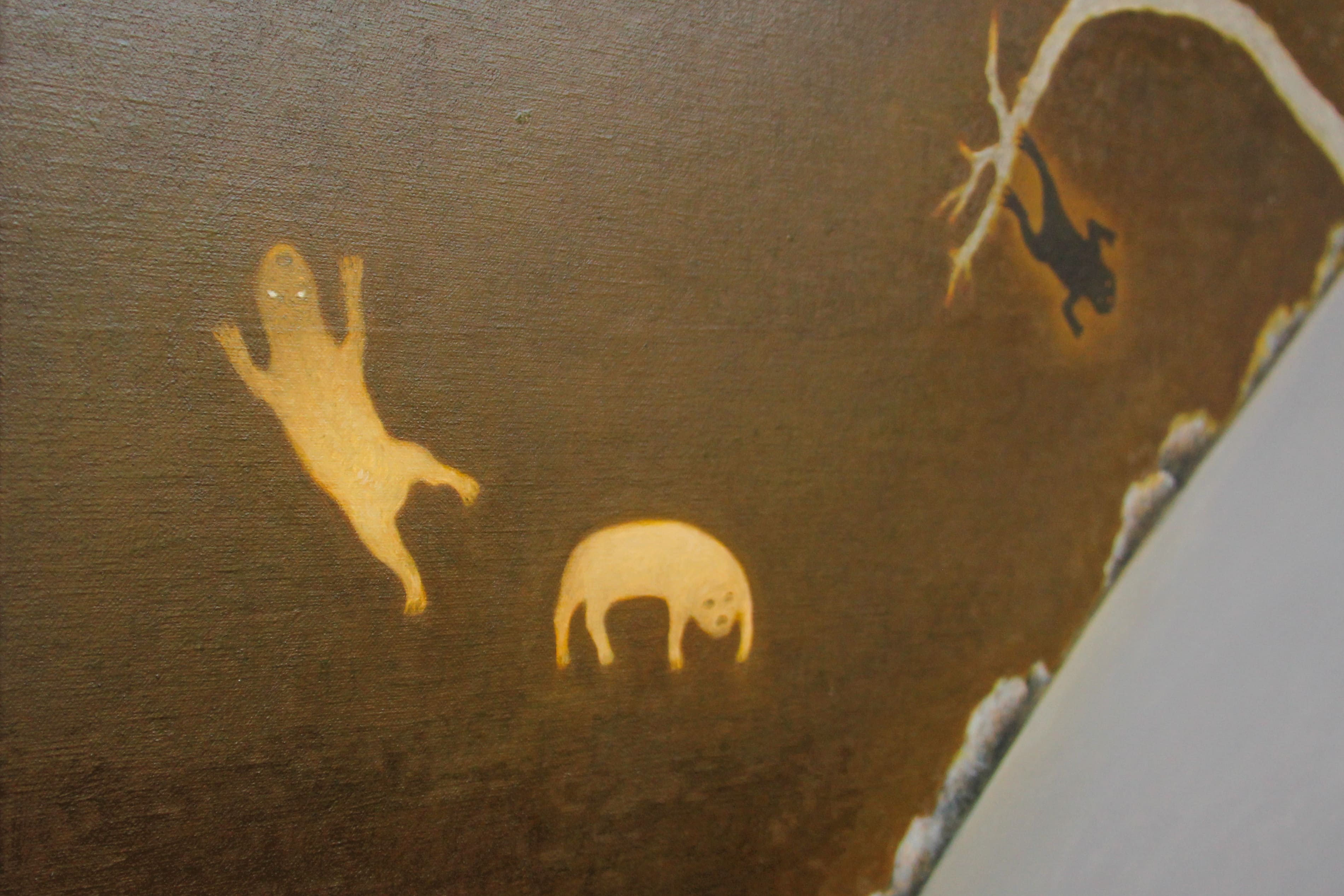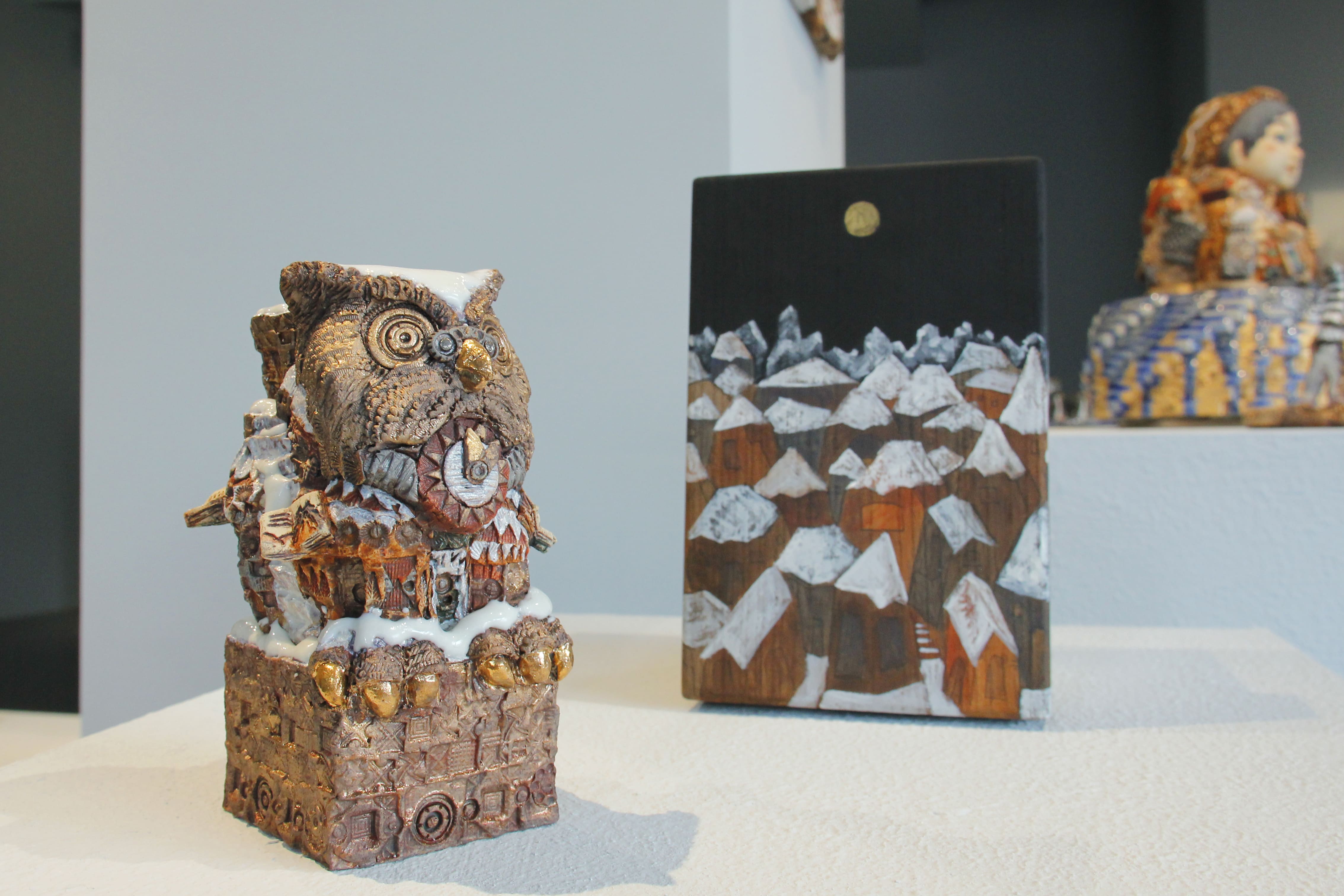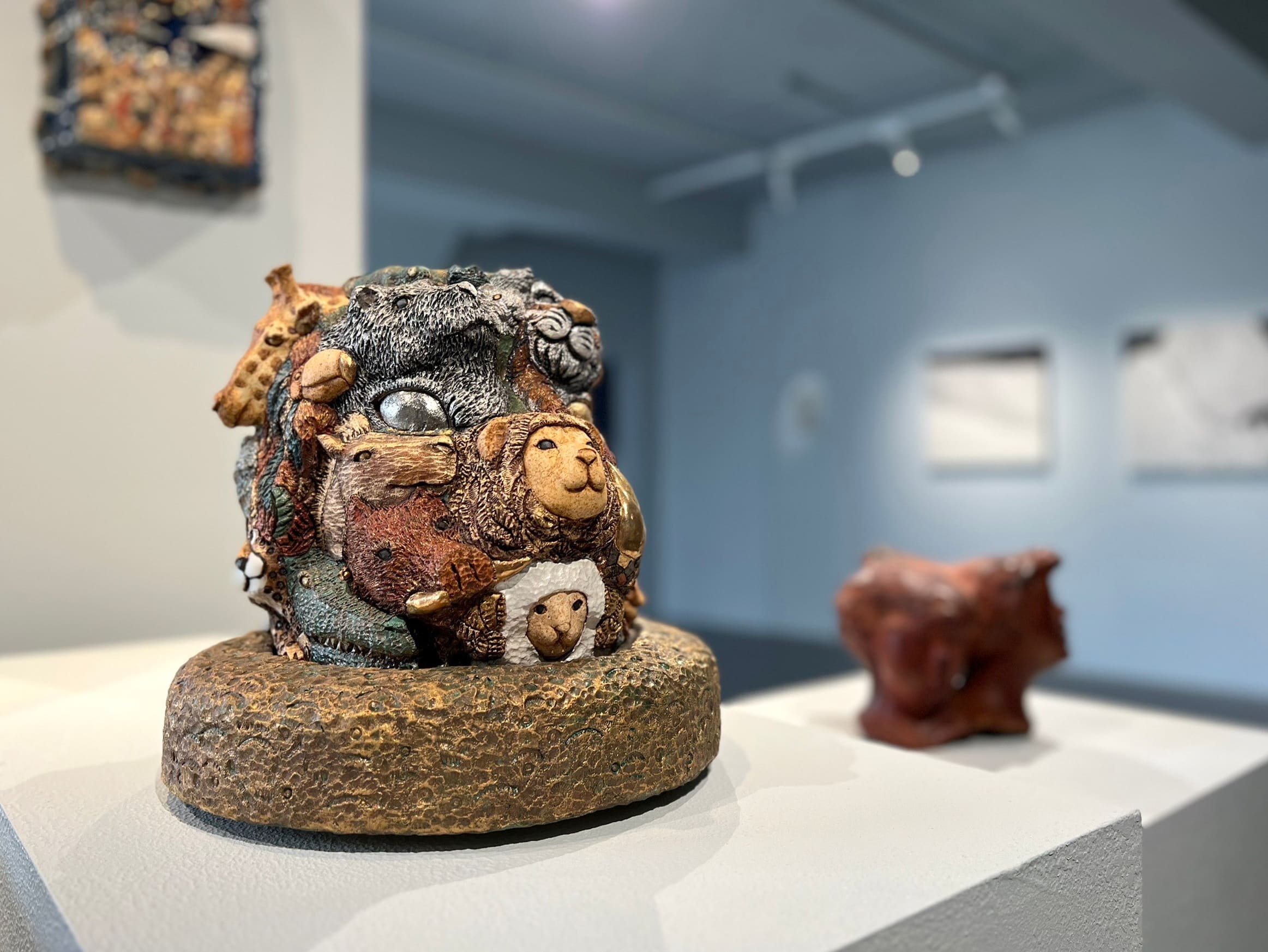 山本淳平的學習過程除了紮實的學院訓練,另一方面也源自於父母皆是陶藝家的潛移默化,其創作融合了雕塑性、陶瓷工法與童年時期不受限制的繪畫思維。他曾描述自小就喜歡畫出細緻的畫,透過想像一個場景與事件,讓人、動物、建築物等不斷地擴展,而這些角色會在畫面中共存,打造出一個完整的世界。於此,可以理解這樣的創作方式不僅帶有高度的繪畫性,由圖像轉化至陶土、釉彩與金質材料的整合運用上,則隱藏著讓人主動發現驚喜的豐富細節。於此,也讓我們看到了藝術家在理解雕塑的思考上,靈活、勇於嘗試且獨具風格的一面。