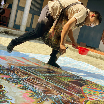 在創作的當下,我身體的每一個細胞都顫動著,彷彿與宇宙共舞。當香火升騰起來時,我能感受到一股奇妙的力量在我身體中流動,讓不安與恐懼逐漸消散。這股力量就如同人的脈搏,也通過城市的燈火傳遞到繞境隊伍中,被人們所展現。我的身體隨著外在的舞動一起起舞,感受著身體每一個肌肉不停地跳動,就如同擂鼓聲和鞭炮聲震耳欲聾的轟鳴一般,使得我的身體更加充滿了力量。在這熱鬧的氛圍中,我的身體彷彿化為煙霧,隨著人流穿越道路,超越時間的限制,無所不能。