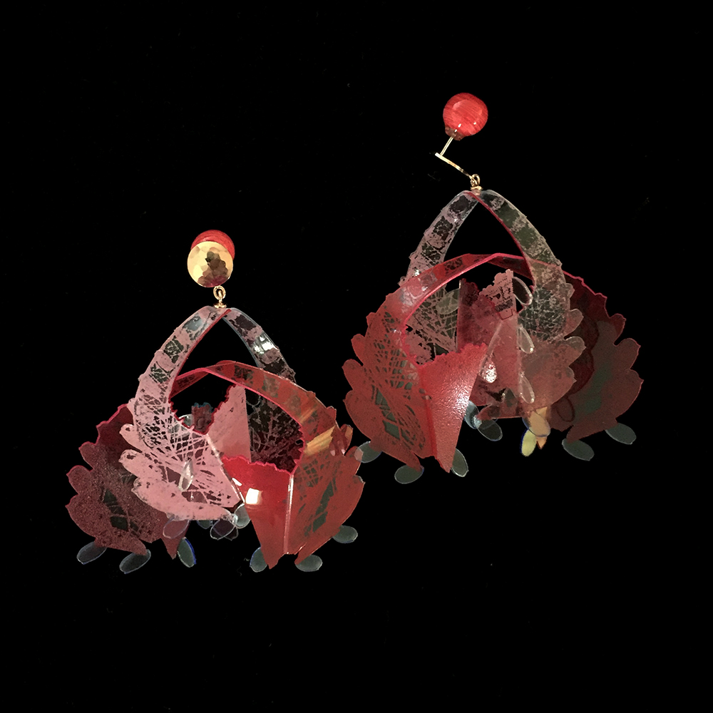 2018單支 6.5 x 8.5 x 2.5 cm塑膠、顏料、水晶樹脂、14k包金(耳針)