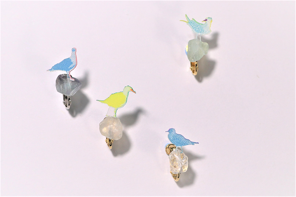 2017單支 5 x 6 x 2.5 cm塑膠、顏料、銀(耳針)、水晶樹脂